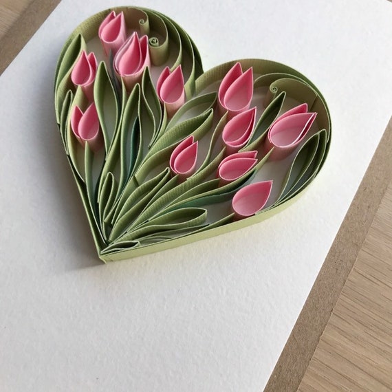 Quilling Heart Quilled Tulips Heart Wedding Handcrafted Etsy