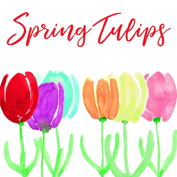 Spring Tulips Clipart Watercolor Clip Art Colors Rainbow Etsy