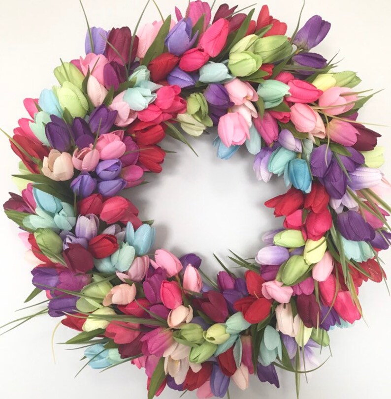 Multi Color Rainbow Tulip Wreath Etsy