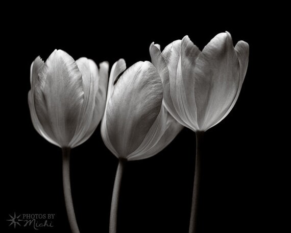 Tulips In Black And White Photo Flowers Still Life Wall Etsy
