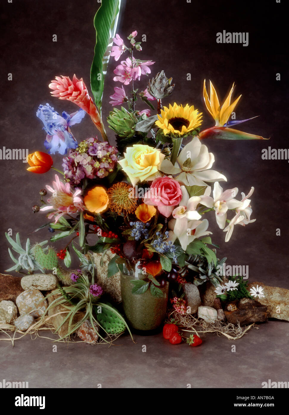 Diverse Flower Arrangement With Sunflowers Roses Bird Of