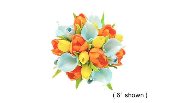 Real Touch Light Blue Calla Lilies Orange Yellow Tulips Bridal Etsy