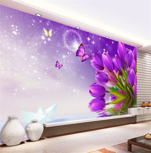 Custom Wall Mural Photo Wallpaper Purple Tulip Modern Fashion