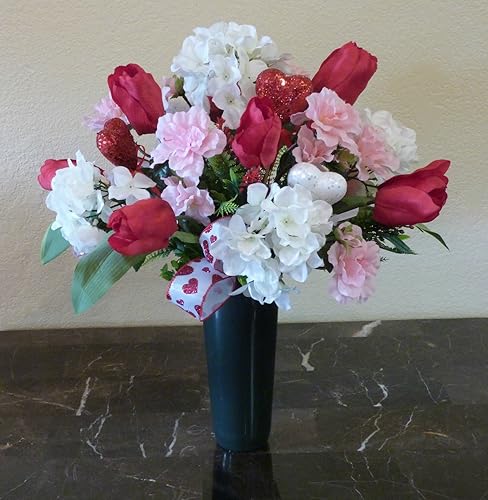 Amazon Com Cemetery Floral Arrangement With Red Tulips Valentine