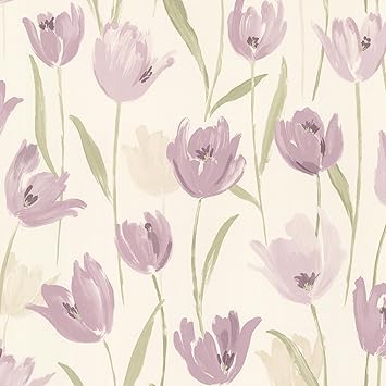 Brewster 347 20113 Finch Hand Painted Tulips Wallpaper Purple